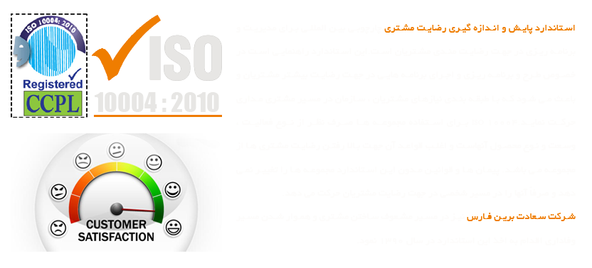 خط مشی شرکت سعادت برین فارس در استانداردهای ISO9001-2008 , ISO10002-2004 , ISO10004-2010