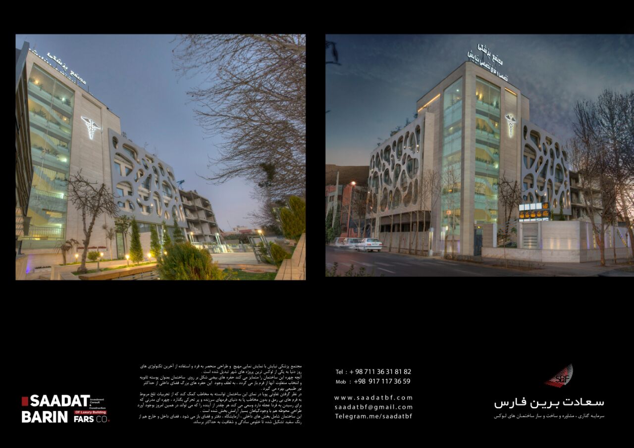 مجتمع پزشکی تخصصی-تجاری نیایش در یکی از بهترین نقاط شهر قرار دارد که کاملا هوشمند بوده و دارای امکانات بسیار زیادی از جمله: فضای سبز طراحی شده، دو آسانسور مجزا برای بیماران و پزشکان، تاسیسات چیلر و تهویه مطبوع، امکانات داخلی کامل شامل ( کابینت ،کاغذ دیواری ، شیرآلات و روشویی های کابینت دار) و... می باشد. نشانی: بلوار نیایش، نبش کوچه 1 برای مشاهده جزئیات بیشتر به منوی زیر مراجعه فرمایید .