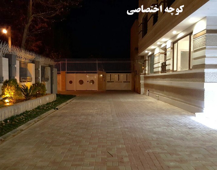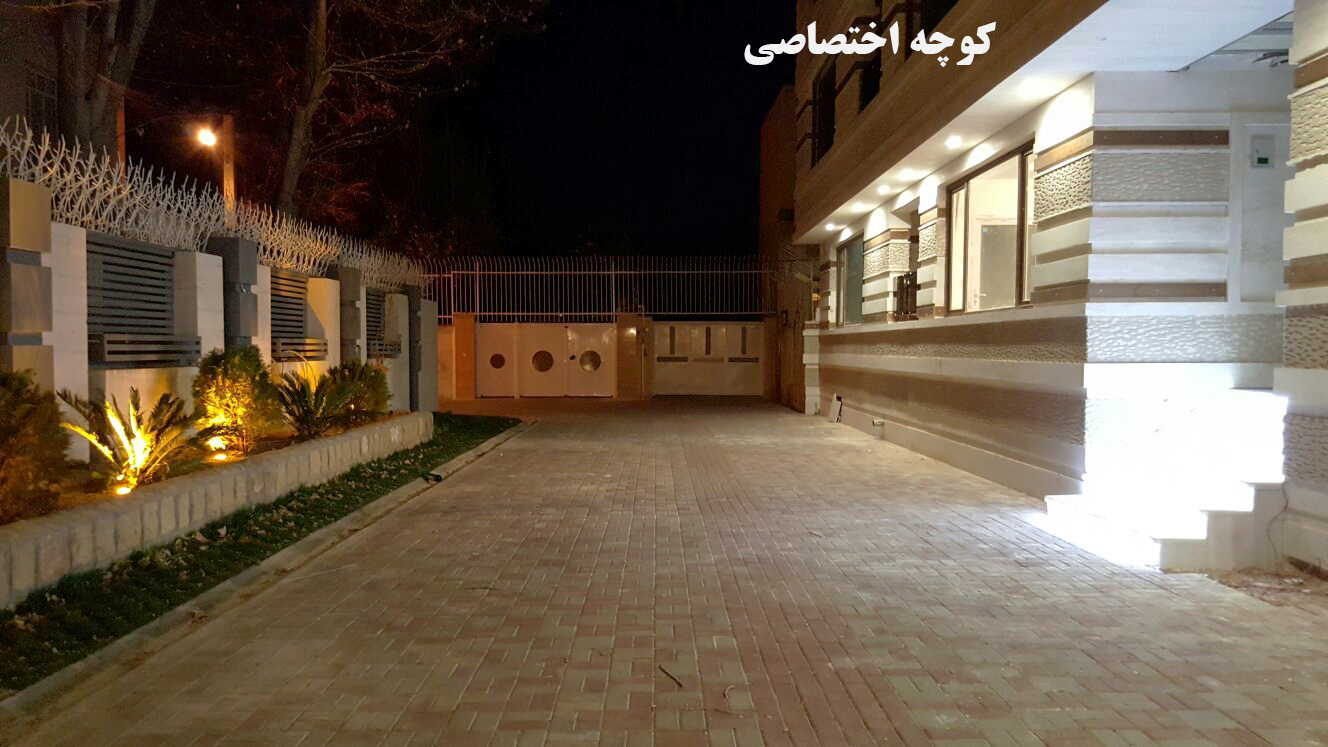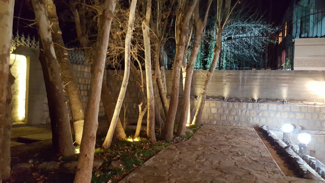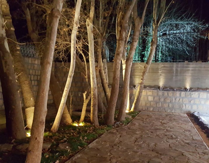 حیاط مدرن مجهز شده به سیستم هاس صوتی، نورپردازی ویژه ،باربیکیو ،سینک ظرفشوییفکابینت
